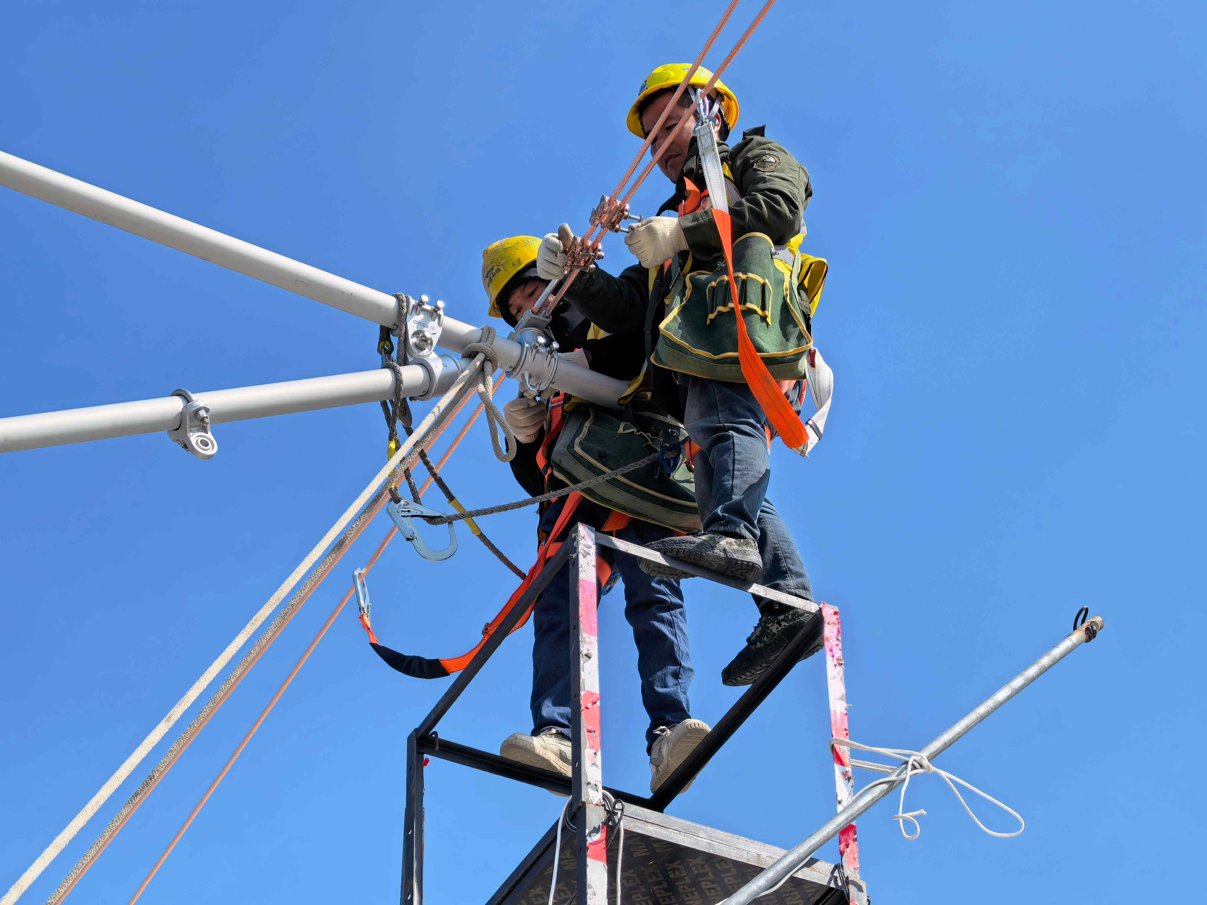 济滨高铁全线首条接触网承力索成功架设