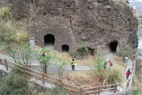 皎平渡遗址水上复建工程即将完工,新址主要为1:1复建的红色革命窑洞遗址